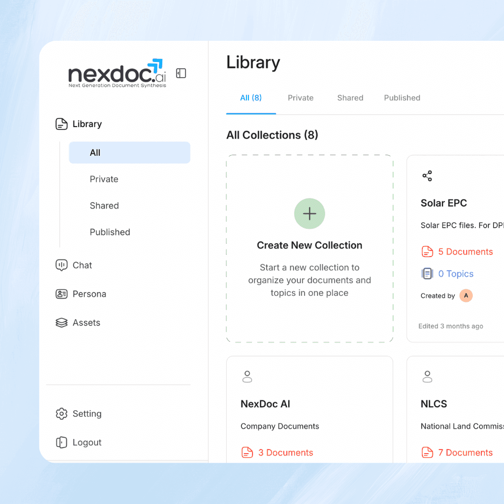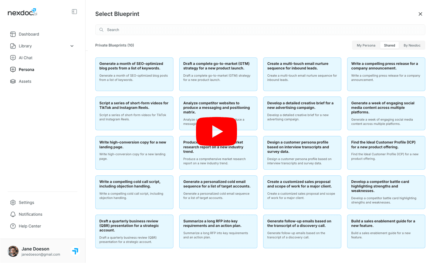NexDoc AI transforms your team's best practices into scalable, automated Blueprints that deliver consultancy-grade assets, every time. Grounded in your data, infused with your unique voice.